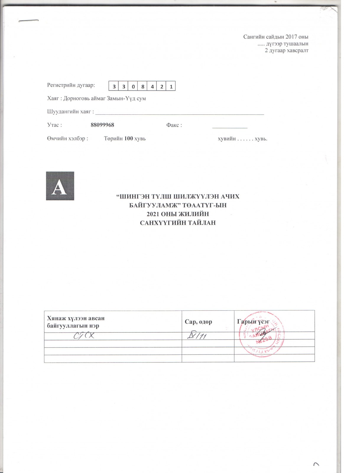 Санхүүгийн 2021 оны тайлан